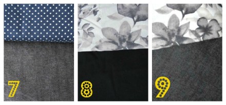 I was already planning on making another. My Macaron gets a lot of wear and it’s really comfortable. I had already bought some fabric for it. But when I looked in my stash I saw many more possible combinations.. and then I was a little lost! And that’s why I’m calling in the help of you, readers. I’ve put together a few combo’s and I’m really curious which one you like the most. It would be a big help in making my choice!