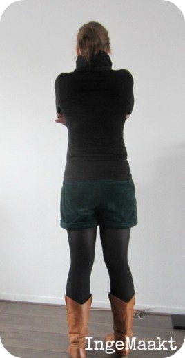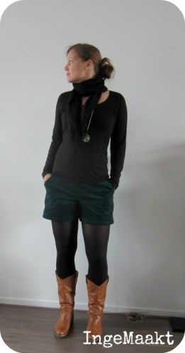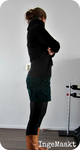 The fabric I used is the dark green corduroy Tine gave me for the Summer Sewing Swap. In the photo’s it is a bit stretched from wearing it but I knew that would happen. With this model I really don’t mind, I like the casual look.