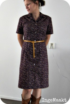Van deze jurk word ik altijd vrolijk. Bloemetjes! Mijn eerste perfect gelukte blinde rits! Hij is wat aan de grote kant, maar door het striklint in de taille lijkt ‘ie toch mooi getailleerd. En als ik eens wat meer heb gegeten, kan de strik mooi wat losser 🙂