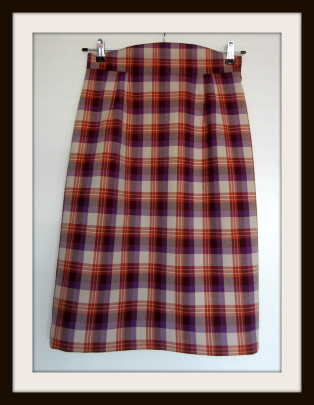 Fortunately the plaid-matching went well and I’m happy with my skirt. I wouldn’t have chosen this fabric in a store myself, but I recieved it in a twitter swap. When I laid it out on my table to pin the pattern on it, it looked pretty much like a table cloth 🙂 But hey, sometimes you just have to try someting, right? And I like the purple and orange together, it looks a little retro. So I thought a pencil skirt would be the perfect choice for this fabric!
