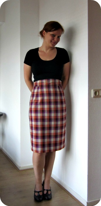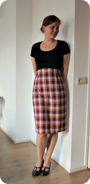 A while ago I talked about wanting to make this skirt, and now it’s finally finished: the pencil skirt from Gerties new book for better sewing. It’s not a difficult pattern but it did take forever to finish, because I wanted the plaid to match at all the seams. So precision sewing it was, not something I normally do. Cutting corners is my middle name.