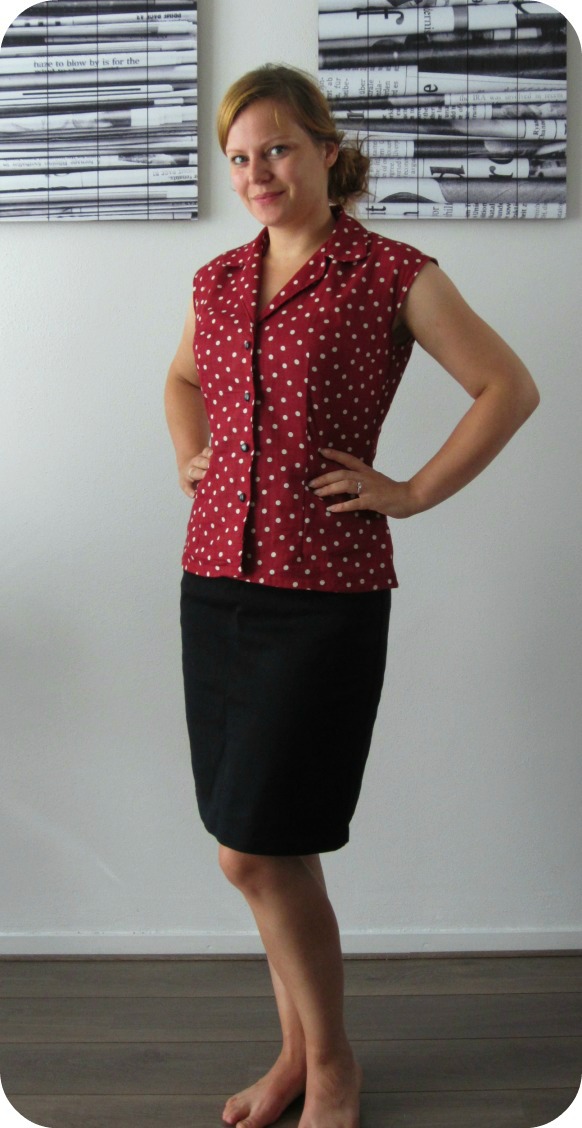 In this pictures I paired the blouse with my Jenny skirt. Even though this blouse turned out pretty ok, I’m feeling a bit ‘meh’ about it. The sides stick out a bit to much at the hips. Looking back they also do that in the dress, but it isn’t as obvious as it is part of the skirt. And besides that, I’m not much of a blouse-wearer, so I have to practice a bit with outfit combinations.