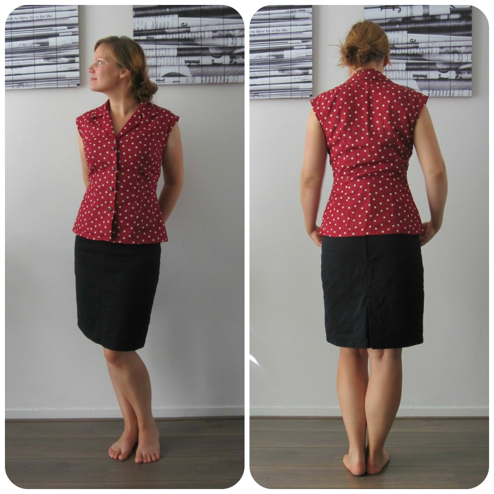 3. Ik vind het een superleuk blousje, ook het mooist op de spijkerbroek en het vestje is er ook tof bij. Als het voor mezelf zou zijn, denk ik dat ik zou kijken of een paar cm korter misschien net mooier zou zijn. Ik vind het voor het rokje persoonlijk wat aan de lange kant. Met wat spelden zou je zo moeten kunnen zien of dat voor jou misschien ook iets meer het gewenste effect heeft of dat ik wauwel 😉