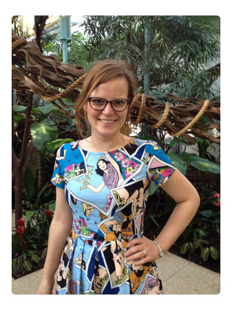 De stof voor deze jurk kocht ik bij de Jan Sikkes hier in Leeuwarden. De print deed me denken aan de ‘Ms. Tree dress‘ en de ‘Home sewing is easy‘, en omdat het bestaat uit allemaal liefdestafereeltjes leek het me een hele toepasselijke.