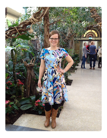 Het patroon is Simplicity 2444, net als mijn ‘Succes dress‘ Om de print op het achterlijfje niet op te breken knipte ik die op ook de stofvouw en zette ik de rits in de zijnaad. Waar ik eerst fan was van middenachter-ritsen, moet ik zeggen dat ik er nu toch steeds meer naar neig ze in de zijnaad te zetten.
