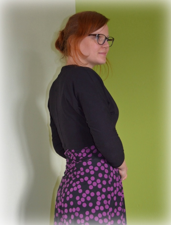 But other than that the fit is just fine. I used a cotton lycra knit fabric, and it sewed up just fine. It gave me a very comfortable little cardigan.