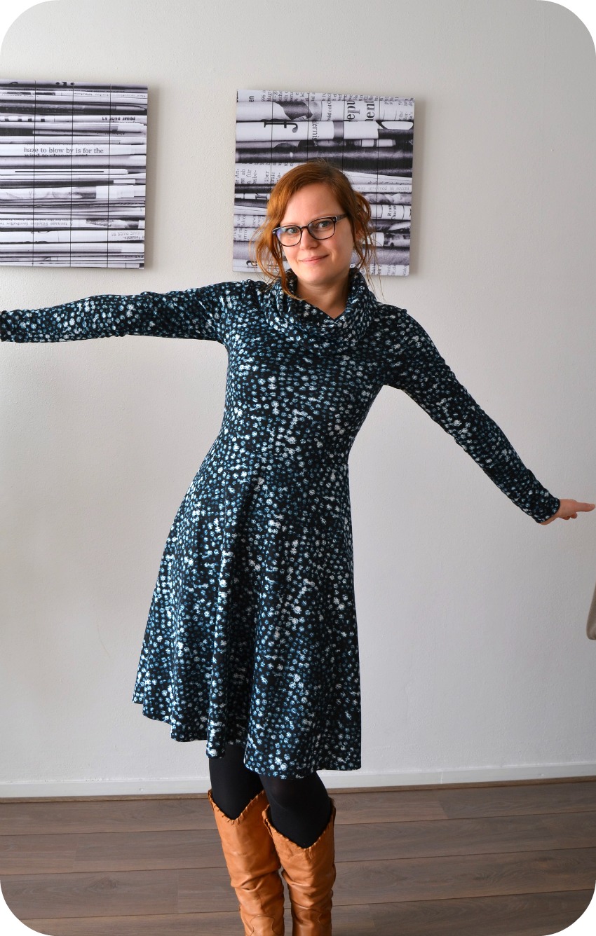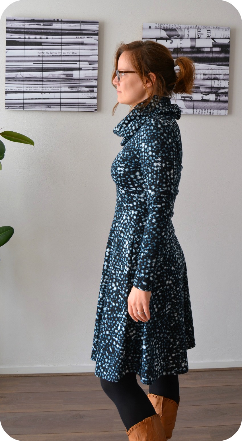 Dat alles resulteerde in misschien wel de comfortabelste jurk die ik ooit heb gemaakt. Lekker warm ook met die col!