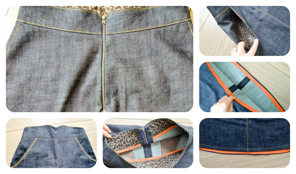 The zipper is an exposed one. A proper exposed one, not just one sewn on on the outside as I’ve done up untill now. I followed this tutorial but made things hard for myself by basting the seam where the zipper goes instead of staystitching both sides. Oops. It caused a bit of fraying at the bottom of the zip. I sewed a bar tack on it and it doesn’t unravel. Problem solved 🙂