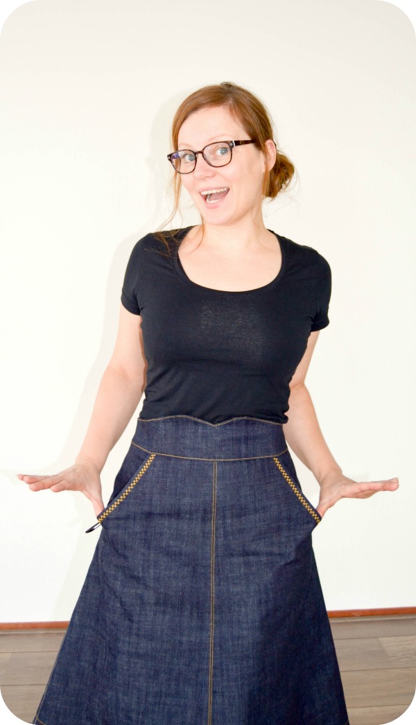 And with a denim skirt one obviously needs to wear cowboy boots. I should really make a red-white checkered shirt, to complete the look. Hmmm… what a lovely excuse for some more fabric shopping!