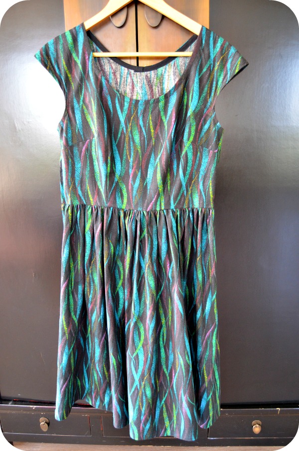 I kind of ran out of blogpost titles for this pattern 🙂 It’s one of my favourite: my basic bodice with scoop neck and cut on cap sleeves. Also known as the flamingo dress, the Japanese Kitty dress, and this un-blogged wax print one: