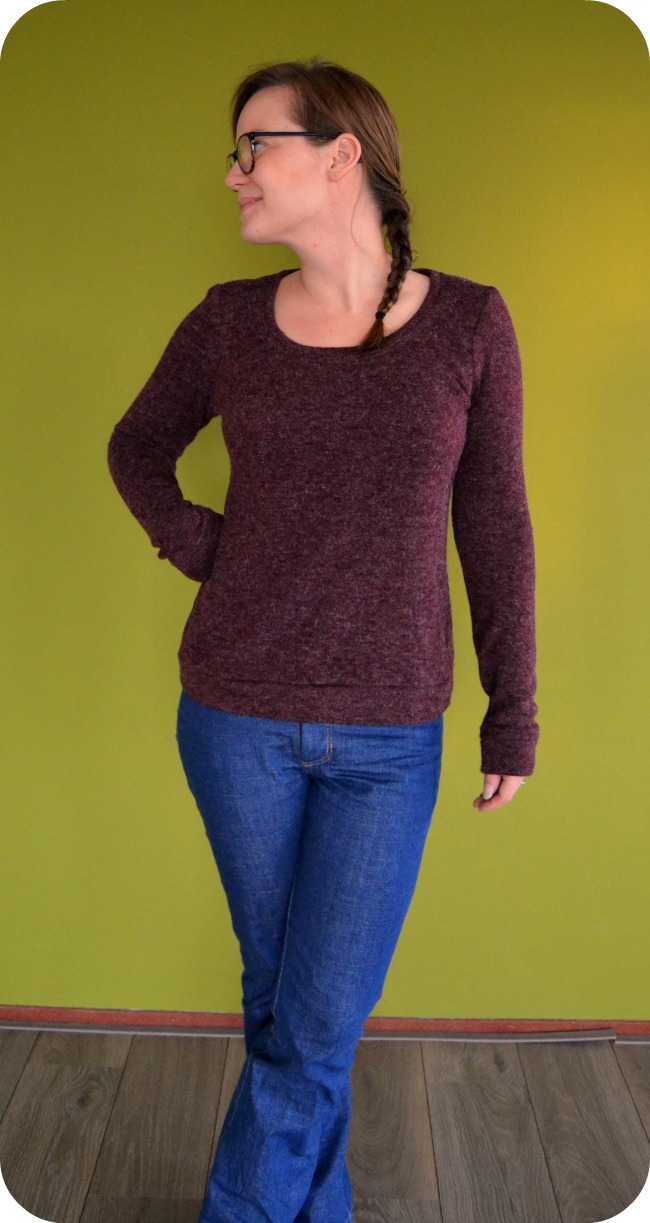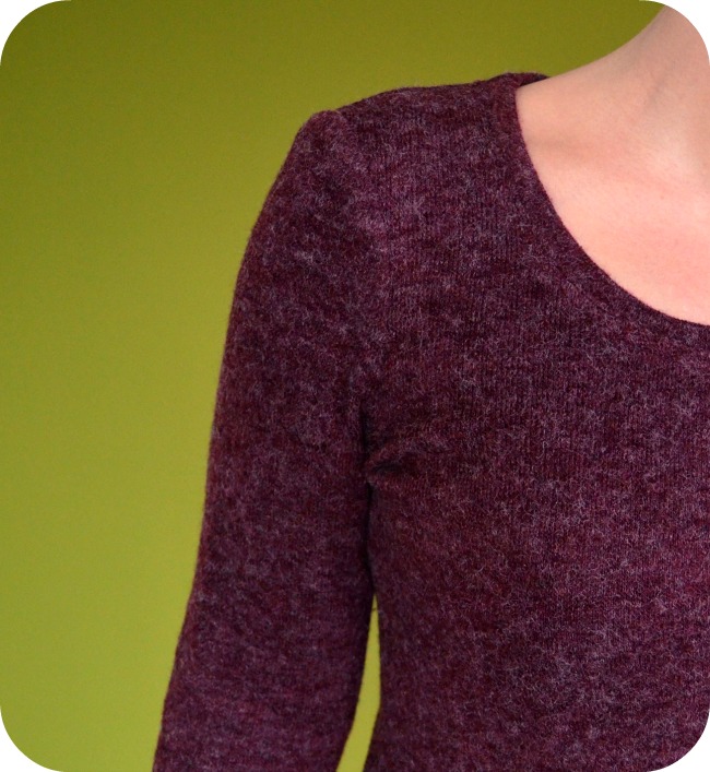 Then I made this one, from leftover fabric from my Opal cardigan. It’s such a great fabric, and it has much more stretch, so no more pulling at the upper back. There is a bit of a sway back thing going on, but to be honest I couldn’t be bothered to adjust the pattern for that. It’s just how a sweater looks right? 😉