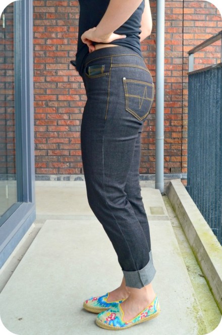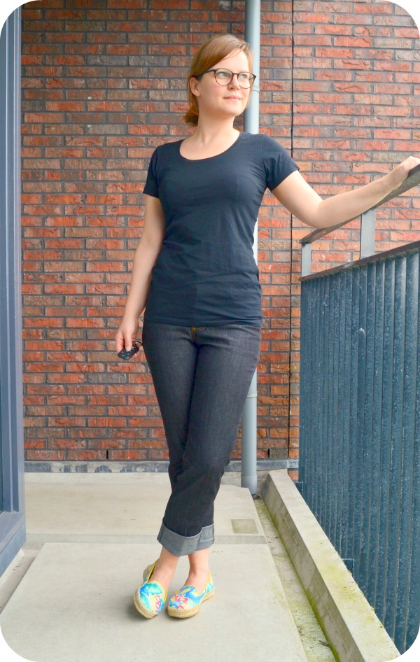 When it comes to sewing patterns I like trying out new things, but for some things I’m firmly in camp ‘never change a winning team’. Jeans, for instance. The bootcut pair of Sandra jeans I made still fits wonderfully well, and so when I felt like making another pair of jeans, I just got it out again. This time I wanted to make the original narrow legged version so I printed out the pattern again, re-did my adjustments and made a few new ones.