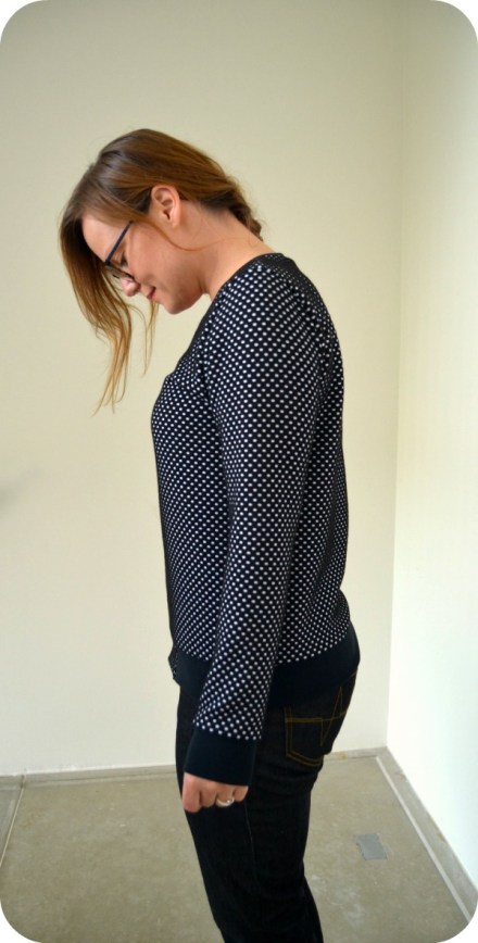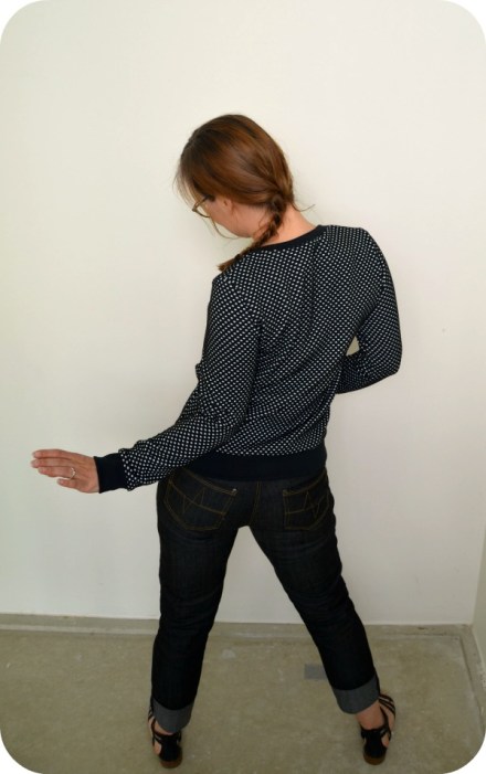 • remember that my adjusted sweater pattern has a center back seam. I cut it on the fold as it is, which added a cm of width to the back, which it doesn’t need. Very clever, ahem 🙂