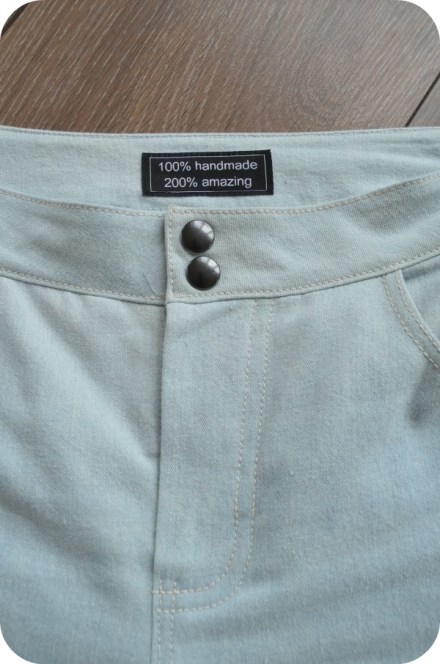 I used snaps instead of a jeans button again. I like how it feels more secure and they don’t show through shirts like jeans buttons can do. The label is from Dutch Label shop. They recently e-mailed me and asked wheter I wanted to try their labels, for free. It didn’t take long to decide 🙂 Inspiration for this label was this Instagram pic of Brooke (the one but last). The quality looks pretty good, they look better than any other label I had made.