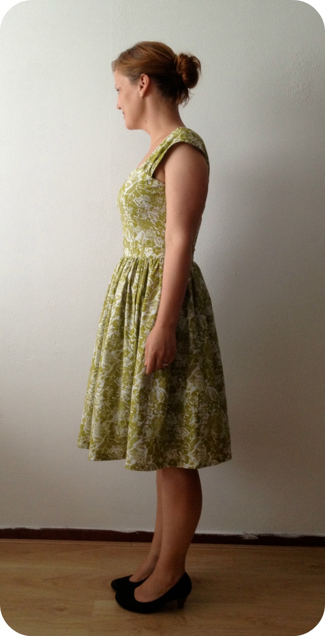 This dress is made up in size 12 (38). While making it I thought it looked quite small, so I sewed the centre back and side seams with 1 instead of 1,5 cm seam allowance. In the end I’m not sure it was really neccesary, so I’ll probably won’t do that again next time.