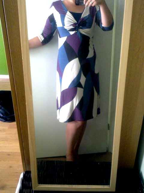 Dat de stof niet helemaal geschikt is voor het patroon is denk ik ook de reden dat de plooien aan de ene kant van het voorpand ervoor zorgen dat het hele voorpand vol rimpels zit. Want ik geloof niet echt dat dát de bedoeling is. Desondanks ben ik erg tevreden en vind ik het ook goed staan. Een goed model ook voor mijn figuur.