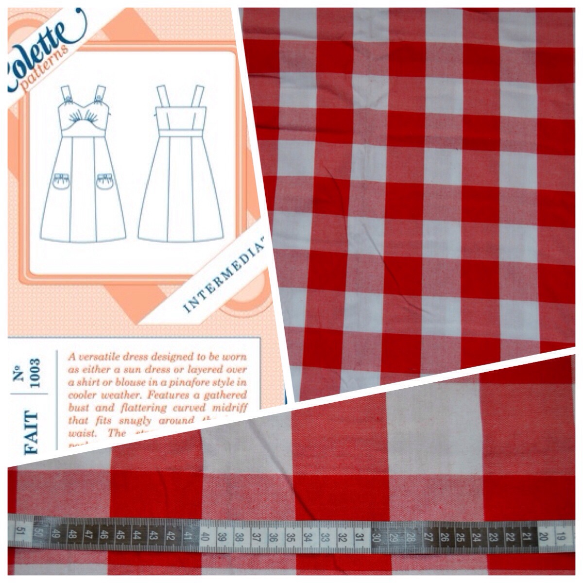 Tot afgelopen woensdag, de eerste dag van mijn vakantie (hoera!). Toen dacht ik nogmaals aan die jurkjes, en hoe fijn die zouden zijn voor de vakantie. Ik lag nog lekker in bed met een bakje koffie en de laptop, en ik keek op de H&M site of ze daar misschien leuke jurkjes hadden. En opeens was daar de inspiratie: ik had nog een half in elkaar geplakt exemplaar van de Kirsten Kimono tee van MariaDenmark liggen. Ooit begonnen aan elkaar te plakken omdat ik dacht dat ik een ander patroon van haar geprint had (lekker snugger). Er moesten nog welgeteld 3 A4tjes geplakt worden. Dat kon ik nog wel opbrengen. Ik knipte een maat M, uitlopend naar een L op de heupen zodat het daar niet te strak zou zitten, en verlengde het patroon met 27,5 centimeter. De zijnaden verbreedde ik bij de zoom aan beide kanten nog met 2 centimeter voor een beetje flair in de rokjes en ik voegde een middenachternaad toe.