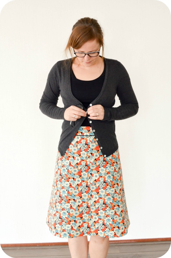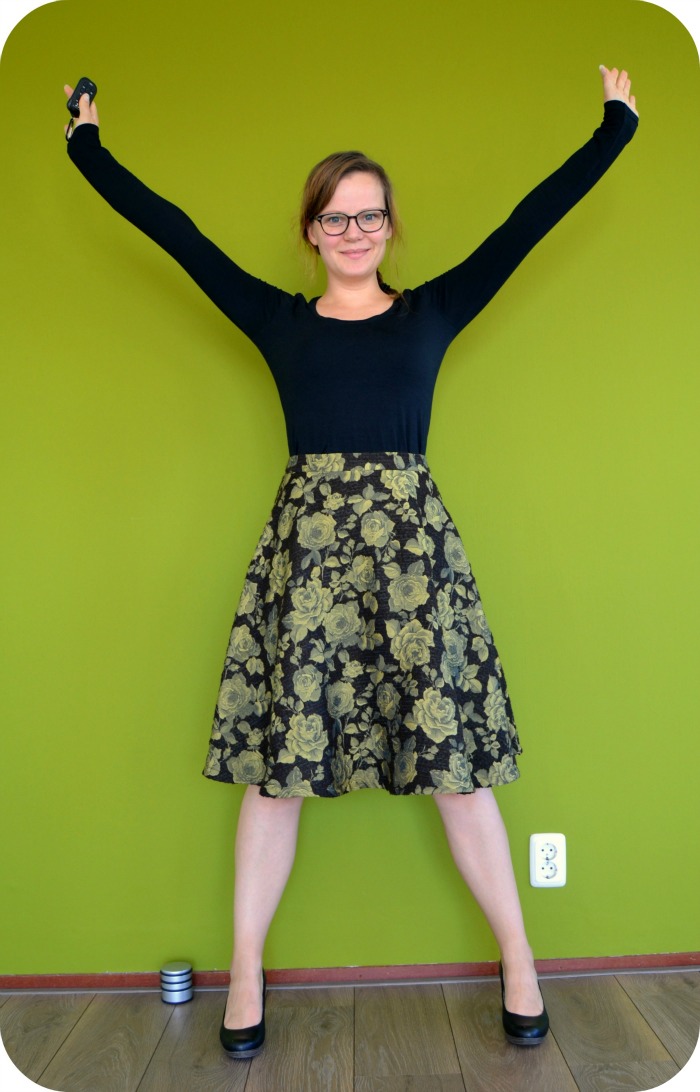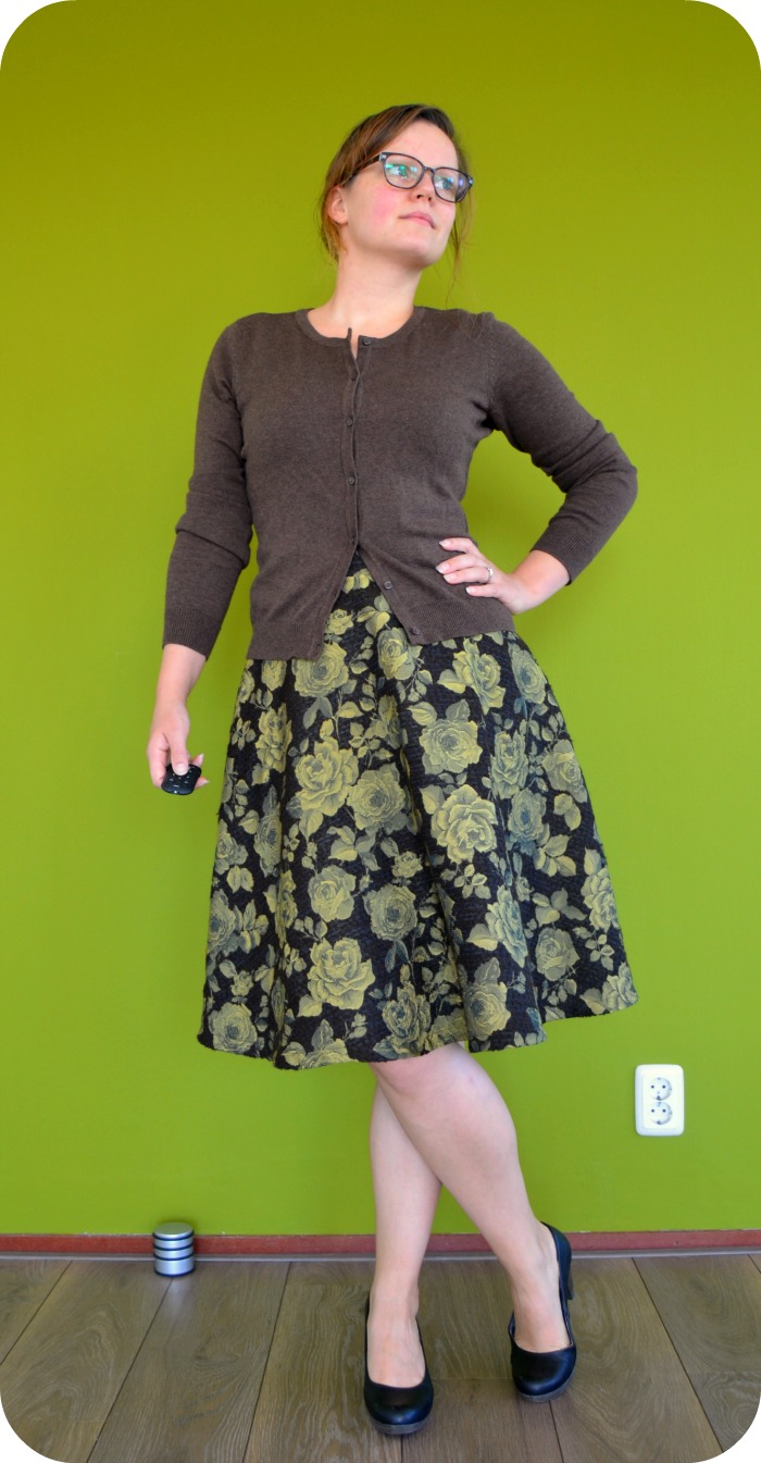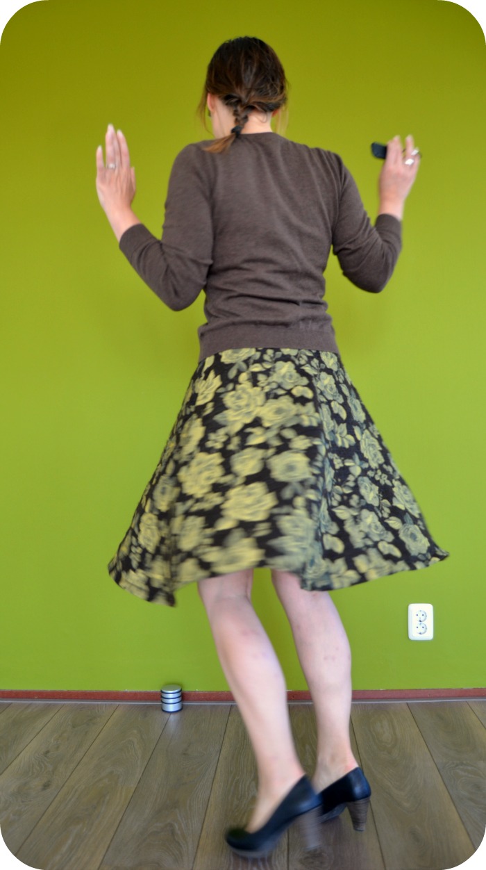 Let’s get straight to the point here: I’m going to adjust this pattern. The fabric stretches (which is needed for this pattern), but it has no recovery. So after a day of wearing it, it looked like I was wearing a bin bag. Not a good look really… Fortunately Claire came up with a great solution on Instagram: change the back piece to a ponte knit. I’m sad I have to take out those two awesome kick pleats in the back but it’s better than not wearing the skirt.