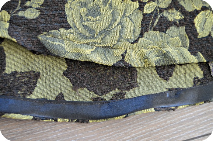 This fabric has some sort of a jaquard on the wrong side, and a pleather layer on the right side. The relief of the jaquard shows through on the right side. I think it’s pretty cool.