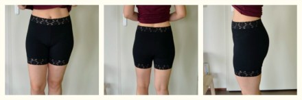 So this is how they look. I’m really, really happy with those. They are much more comfortable than the store bought long underpants and it’s way cheaper to make them myself! I’ve already made 6 pairs and have been wearing them almost every day (not all 6 at the same time obviously). Despite the lace I don’t think they’re particularly charming but it does look better than that chafing rash 😀